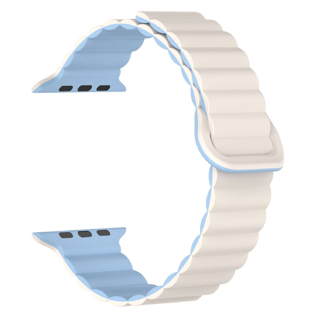 AppleWatch 42/44/45/49 シリコンマグネットバンド ホワイトブルー