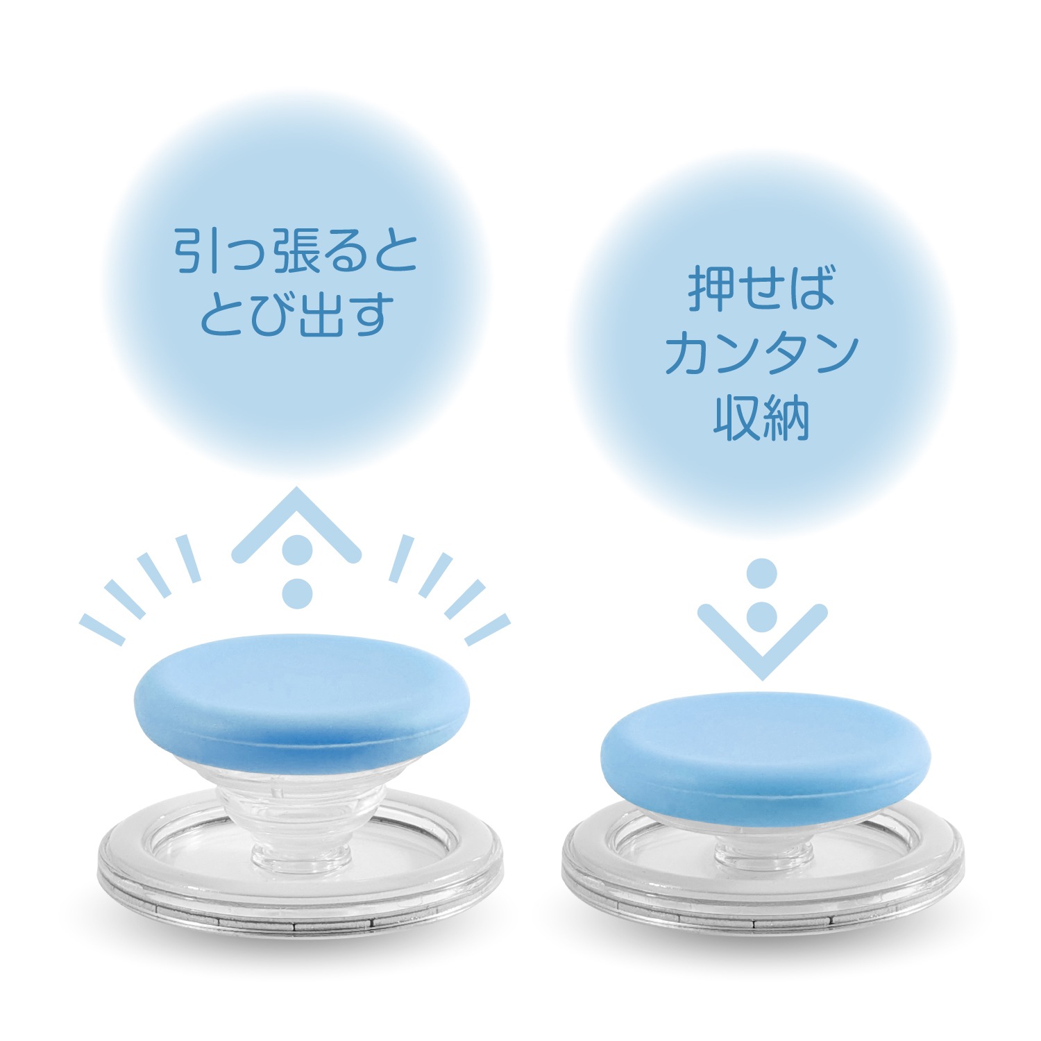 グリップ部分を軽く上げるだけで、スマホを横向きに立てられるスタンドとして利用可能です。