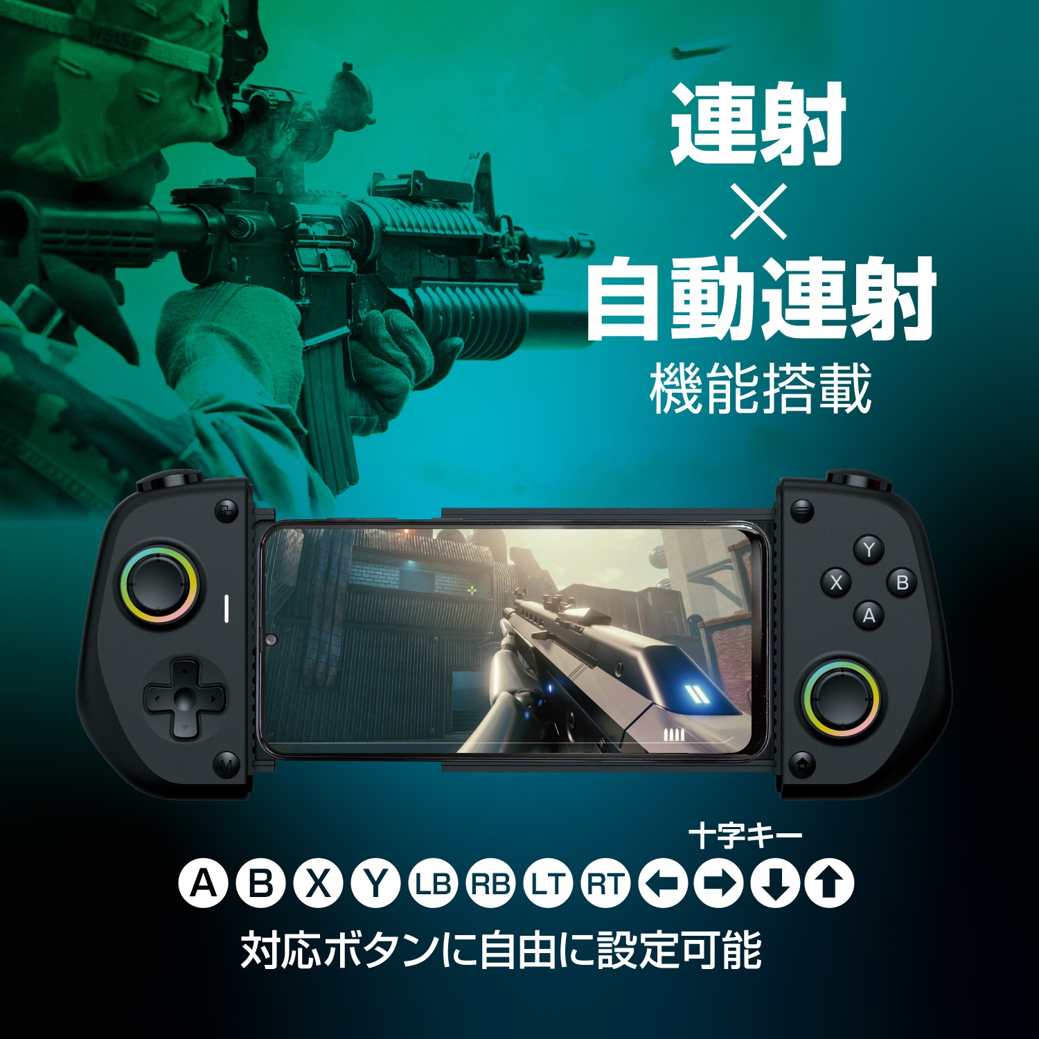 持ちやすさを考えた軽量設計で、スマホゲームを本格的に楽しみたい方に向けた多機種対応スマホコントローラーです。