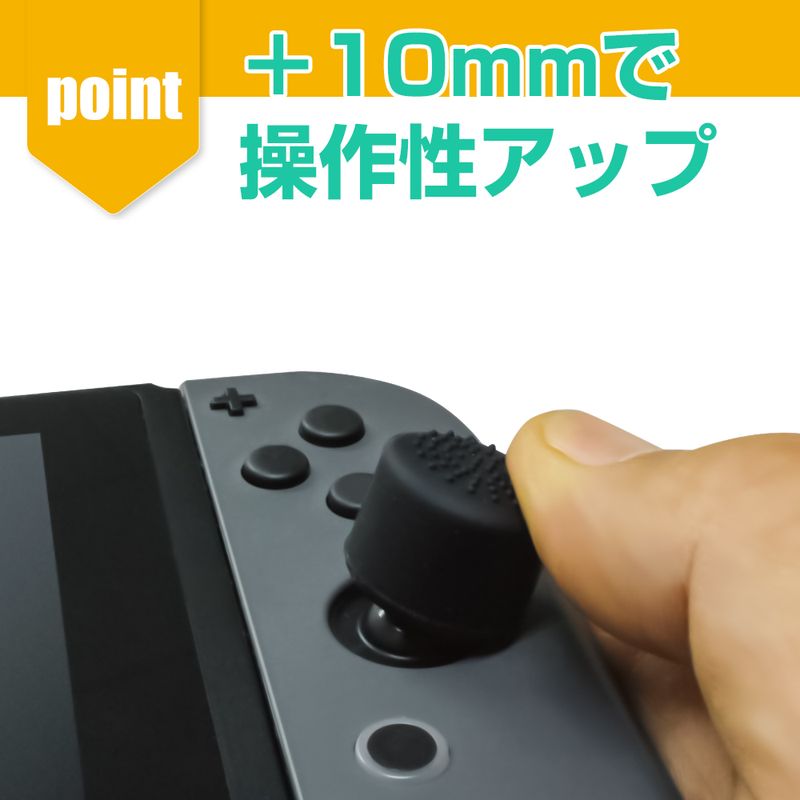 本製品は滑り止め付きのシリコンキャップです。ジョイスティックの高さを+10mmに することで操作性をアップし、より繊細なプレイが可能になります。女性や小さなお子様の手にもしっかりとフィットし、グリップ力がアップします。