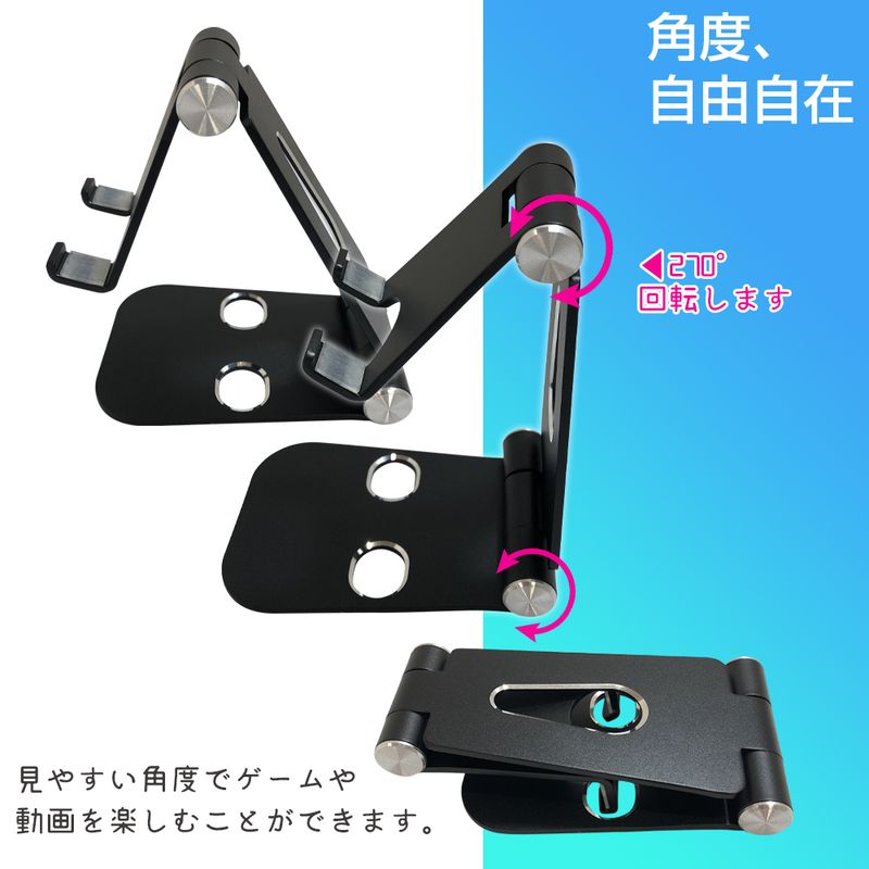 本製品は角度を自由に調節可能です。見やすい角度でゲームや動画を楽しむことができます。テーブルモードに最適で、長時間のプレイも楽にできます。