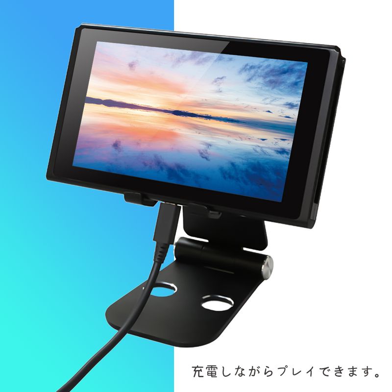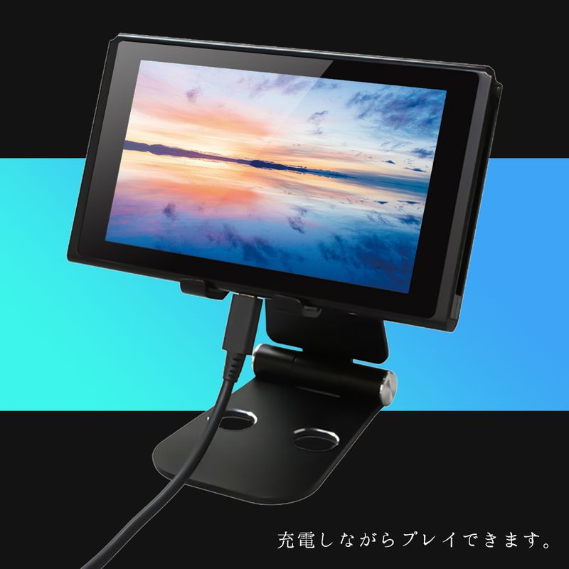本製品は充電しながら遊ぶことができます。充電ケーブルを挿し、スイッチのスタンドが使えない場合など、本製品を使用すれば、いつでもどこでも快適にプレイを楽しむことができます。