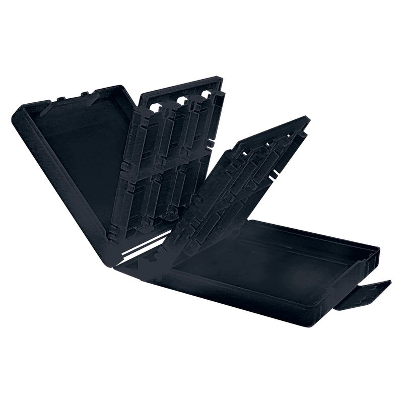 収納ケースは、8枚、12枚、24枚用があります。任天堂スイッチのゲームカードと、MicroSDを2枚収容することができます。カラーバリエーションは、白、青、黒の3色をご用意しております。