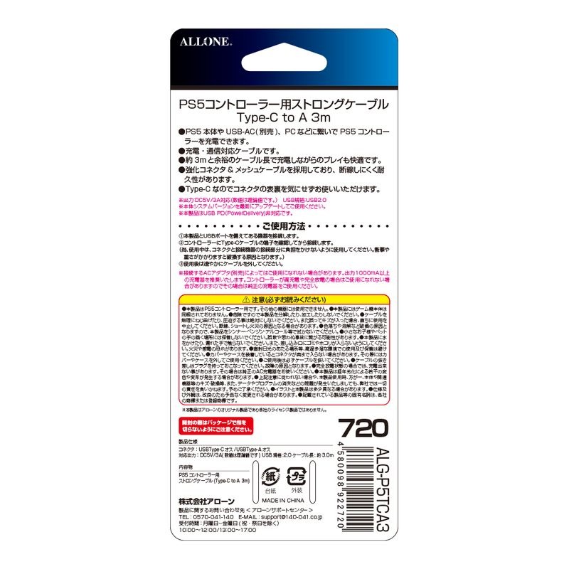 PS5コントローラー用ストロングケーブル Type-C to A 3m
