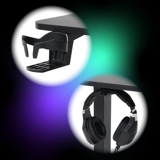 ドリンクホルダー、ヘッドフォンスタンド、電源タップ収納BOX