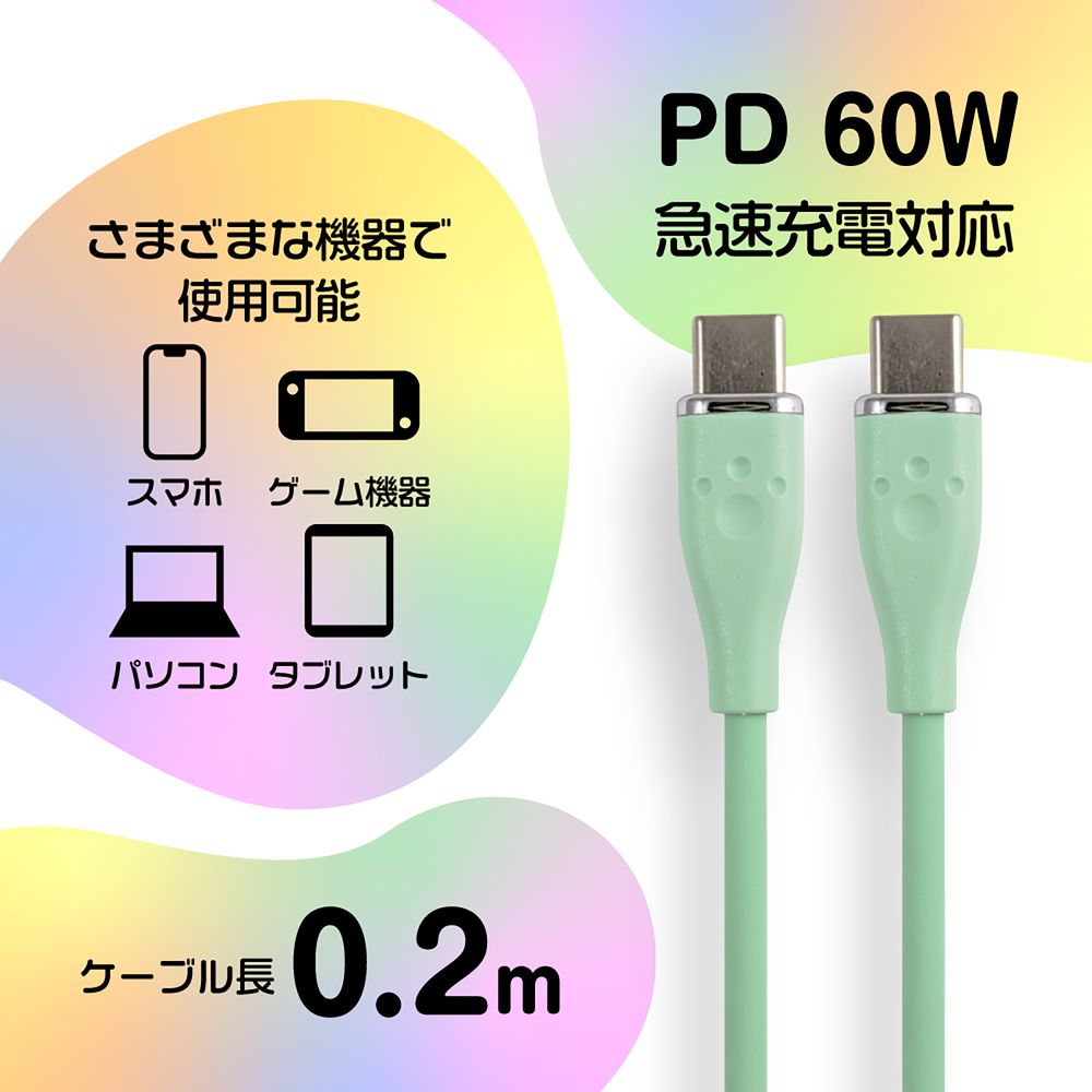 60W対応シリコンケーブル Type C to C 0.2m キャメル
