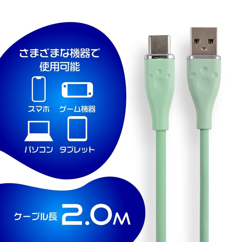 PS5用シリコンケーブル Type A to C 2m スカイブルー