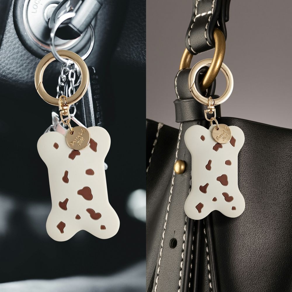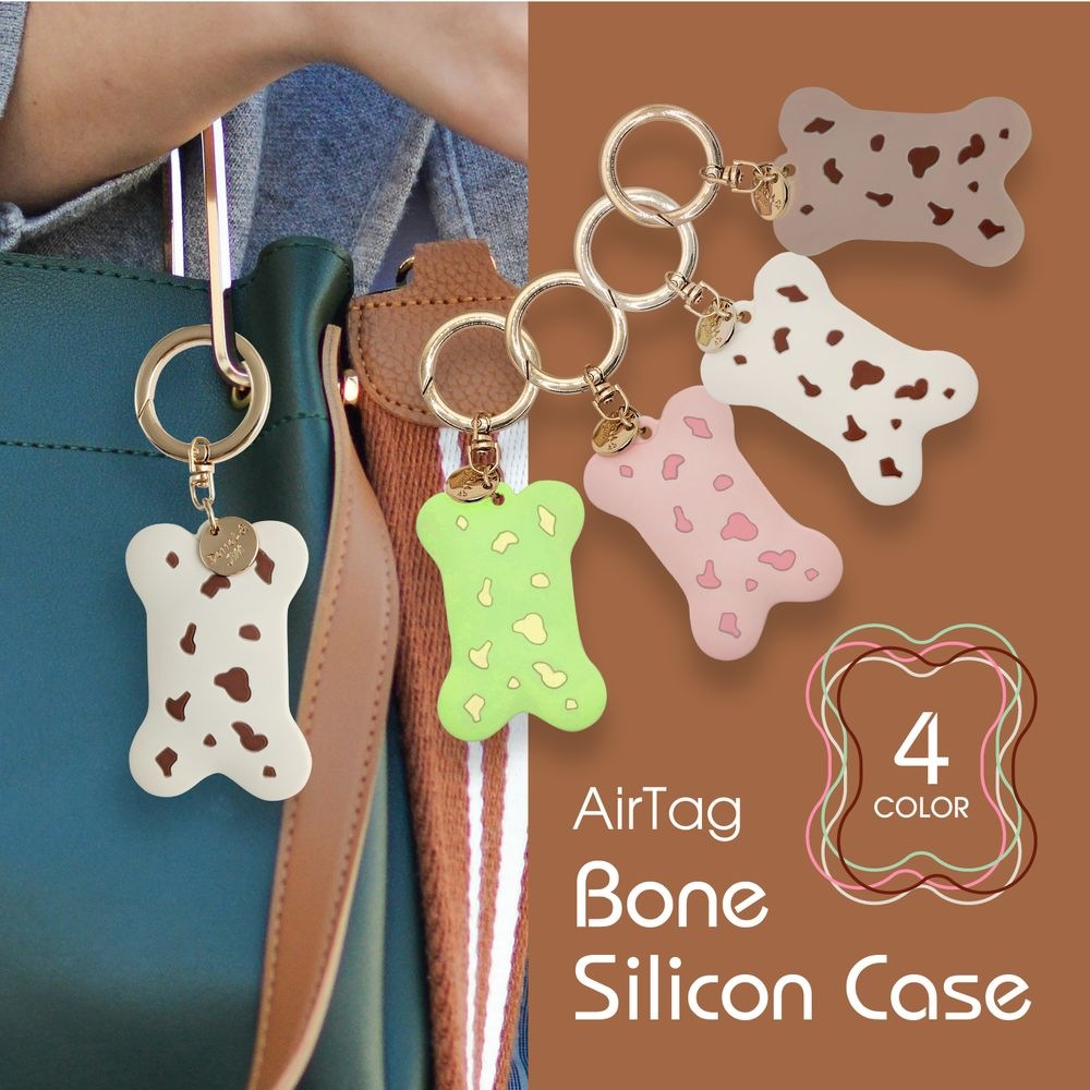 柔らかいシリコン素材で作られた、かわいい骨型デザインのAirTagケースです。