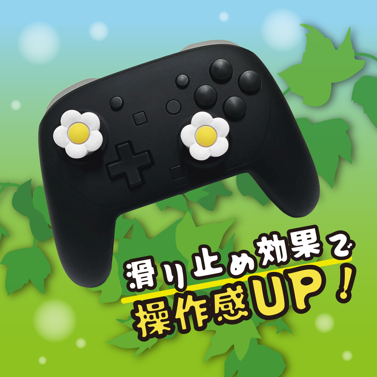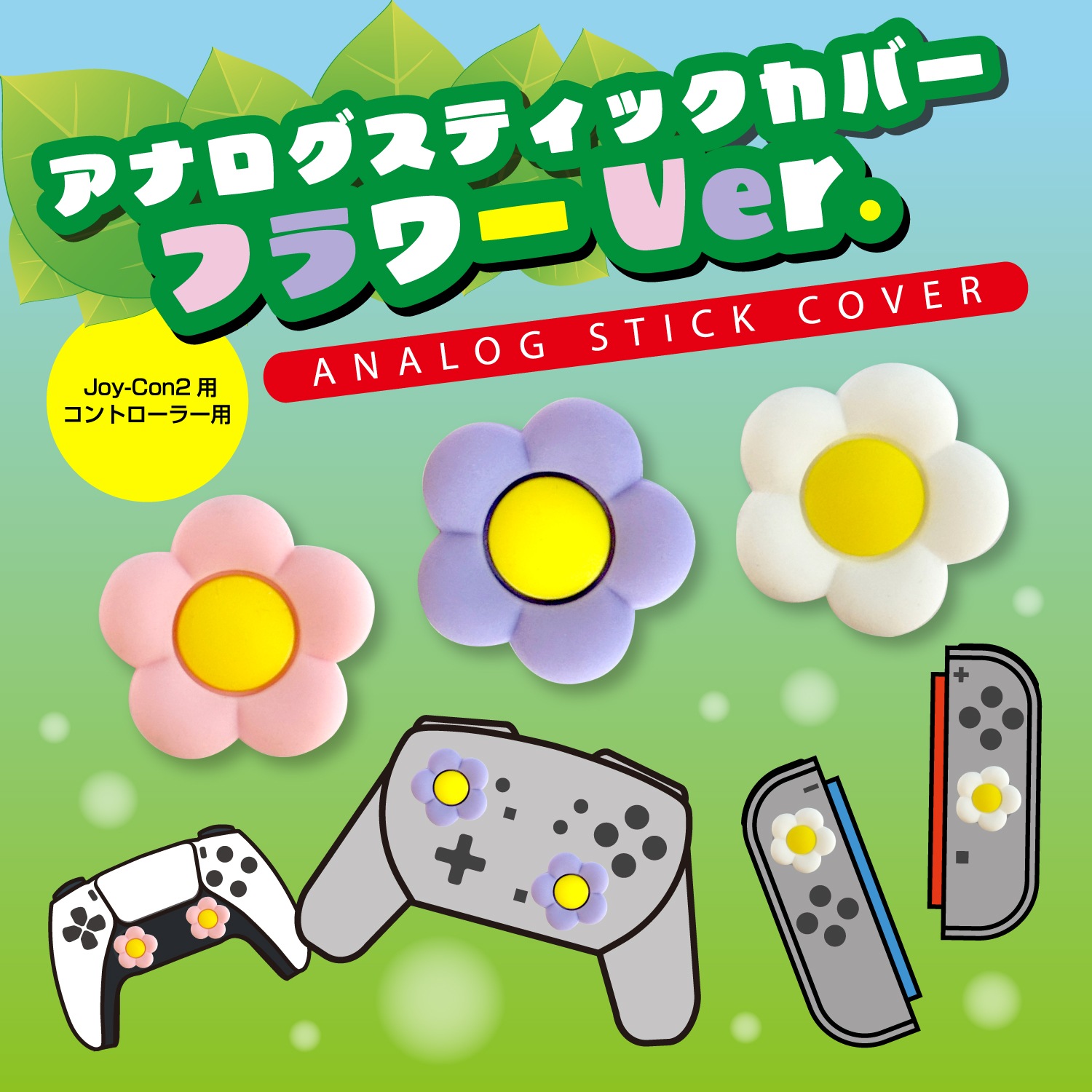 ぷにっとした手触りに癒されること間違いなしのかわいいお花型アナログスティックカバーです。