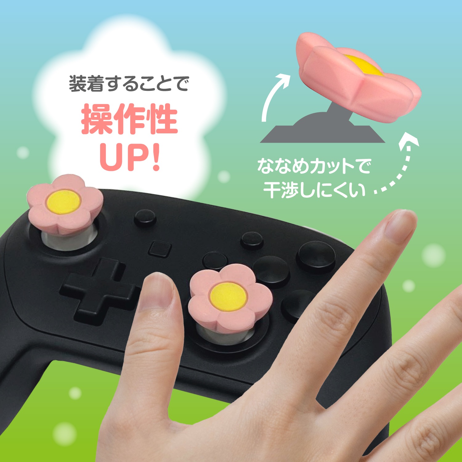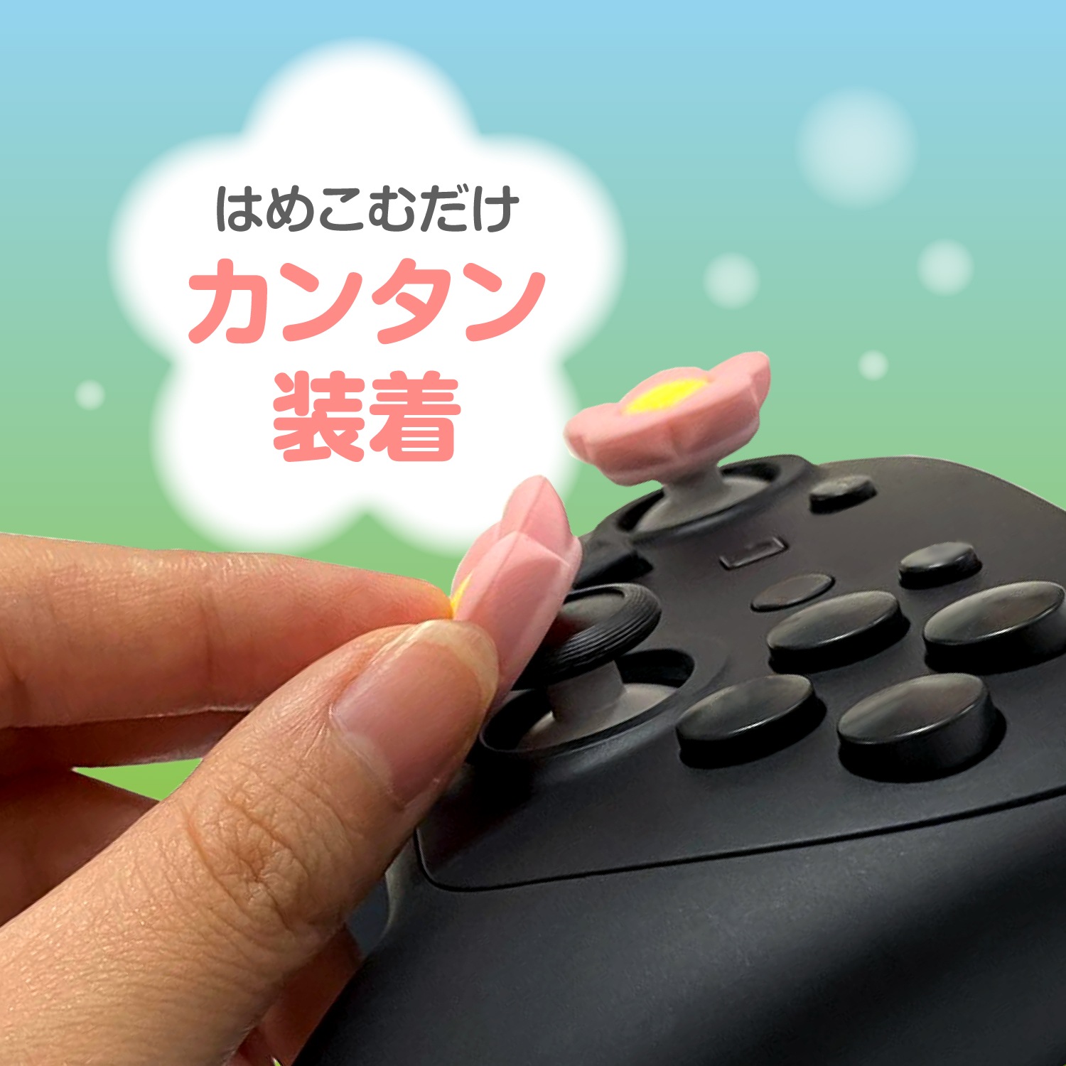 ぷにっとした手触りに癒されること間違いなしのかわいいお花型アナログスティックカバーです。