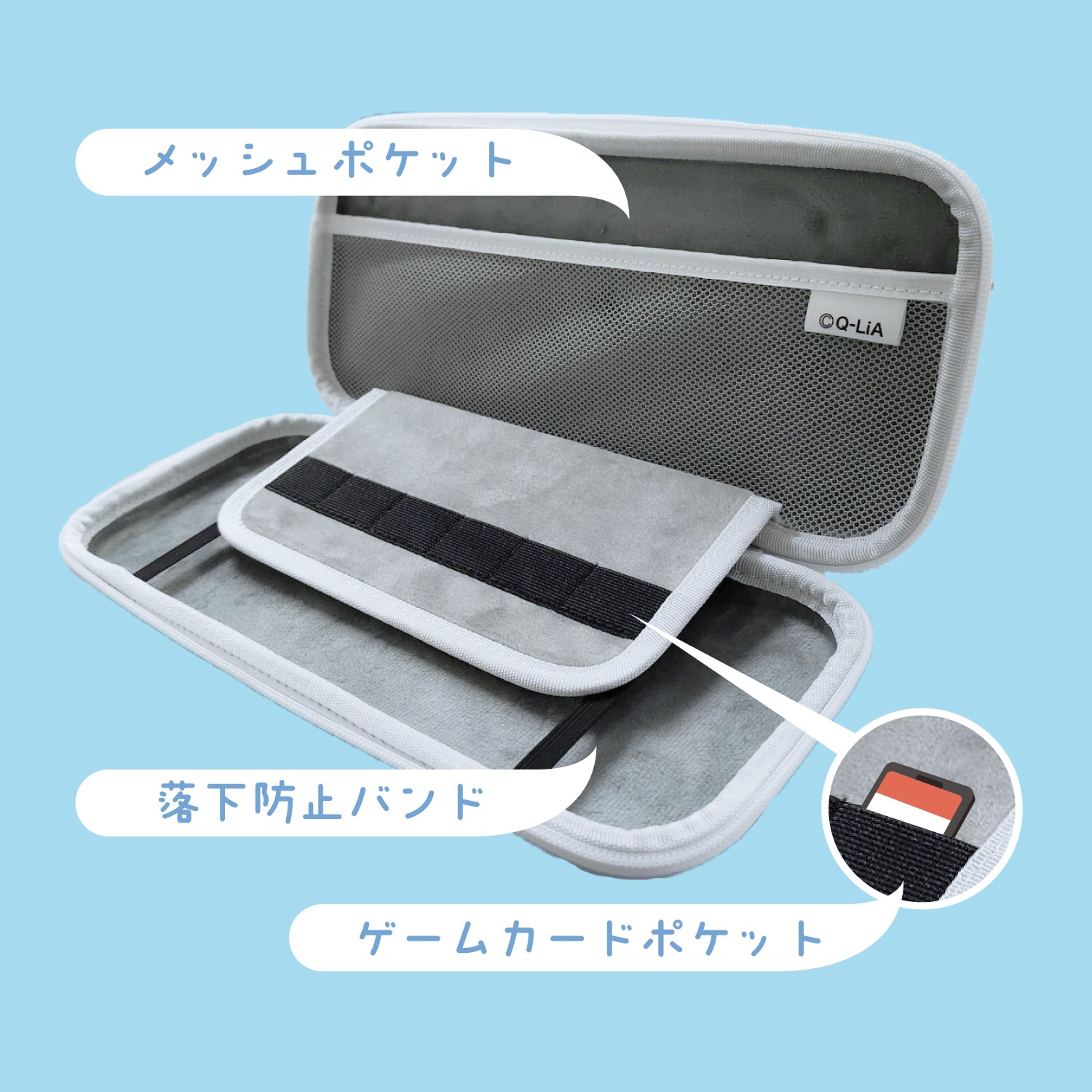 薄型でコンパクトなのでバッグにも入れやすく、ゲーム機本体を固定するバンドも付いているため持ち運びにも安心です。