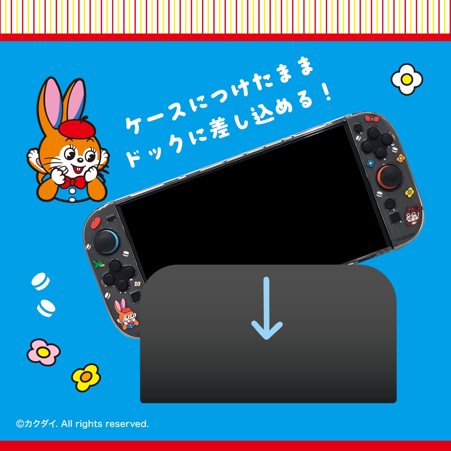 ゲーム機にピッタリとフィットし厚みが薄いため、装着したまま本体ドッグに差し込み、充電することが可能です。