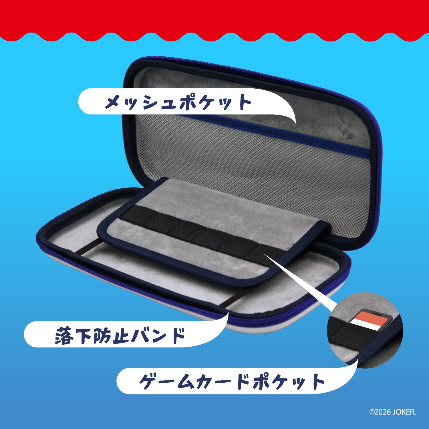 軽くて丈夫なEVA素材を使用。薄型でコンパクトなのでバッグにも入れやすく、ゲーム機本体を固定するバンドも付いているため持ち運びにも安心です。