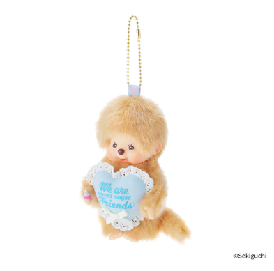 モンチッチくんのキーチェーンは、ハートのクッションをぎゅっと抱いたキュートなデザイン。