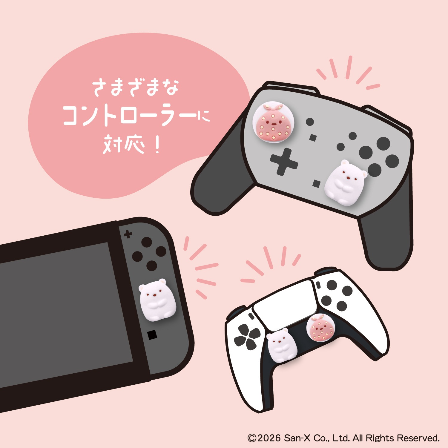 【ゲーム機をかわいく大変身!】サンエックスの大人気キャラクター「すみっコぐらし」がアナログスティックカバーになって登場!かわいいキャラクターと一緒にゲームを楽しんじゃおう♪