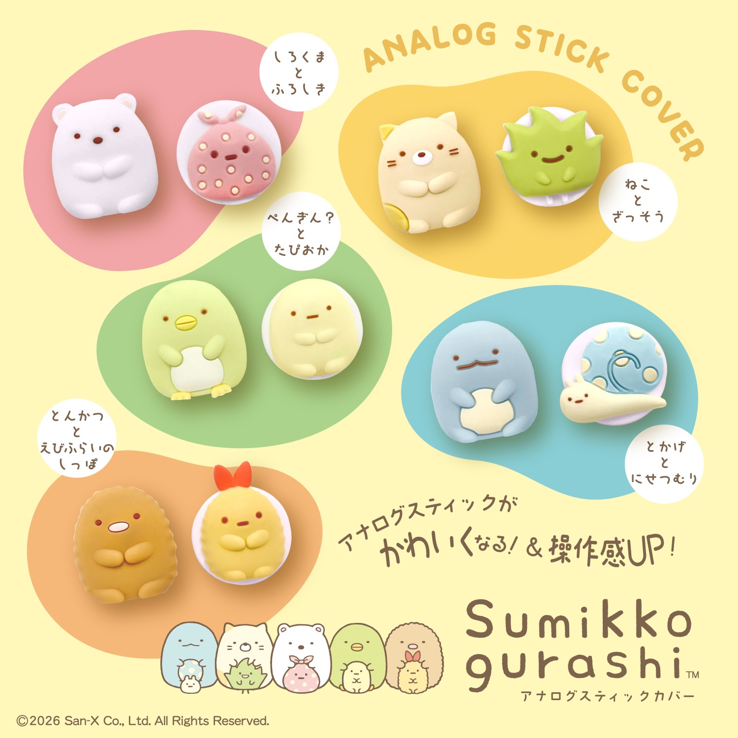 【ゲーム機をかわいく大変身!】サンエックスの大人気キャラクター「すみっコぐらし」がアナログスティックカバーになって登場!かわいいキャラクターと一緒にゲームを楽しんじゃおう♪